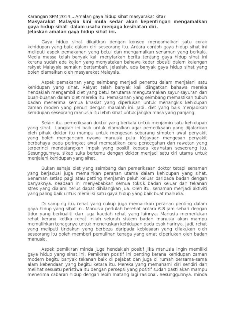 Amalan Gaya Hidup Sihat Karangan Spm Sukesihatkah